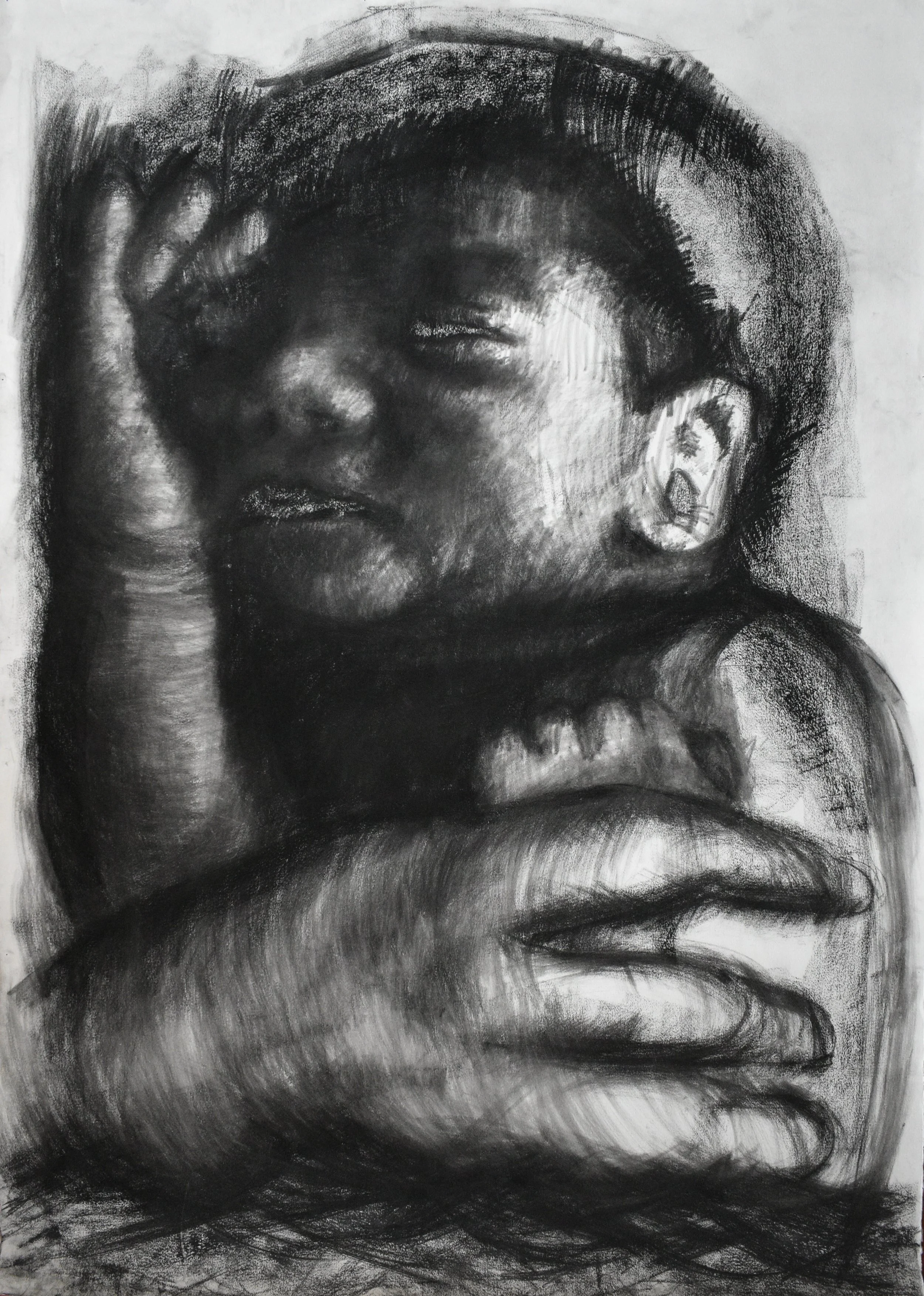 Kristone Capistrano, 'Dormition' detail, 2022. Charcoal and sandpaper on paper. Image courtesy of the artist.