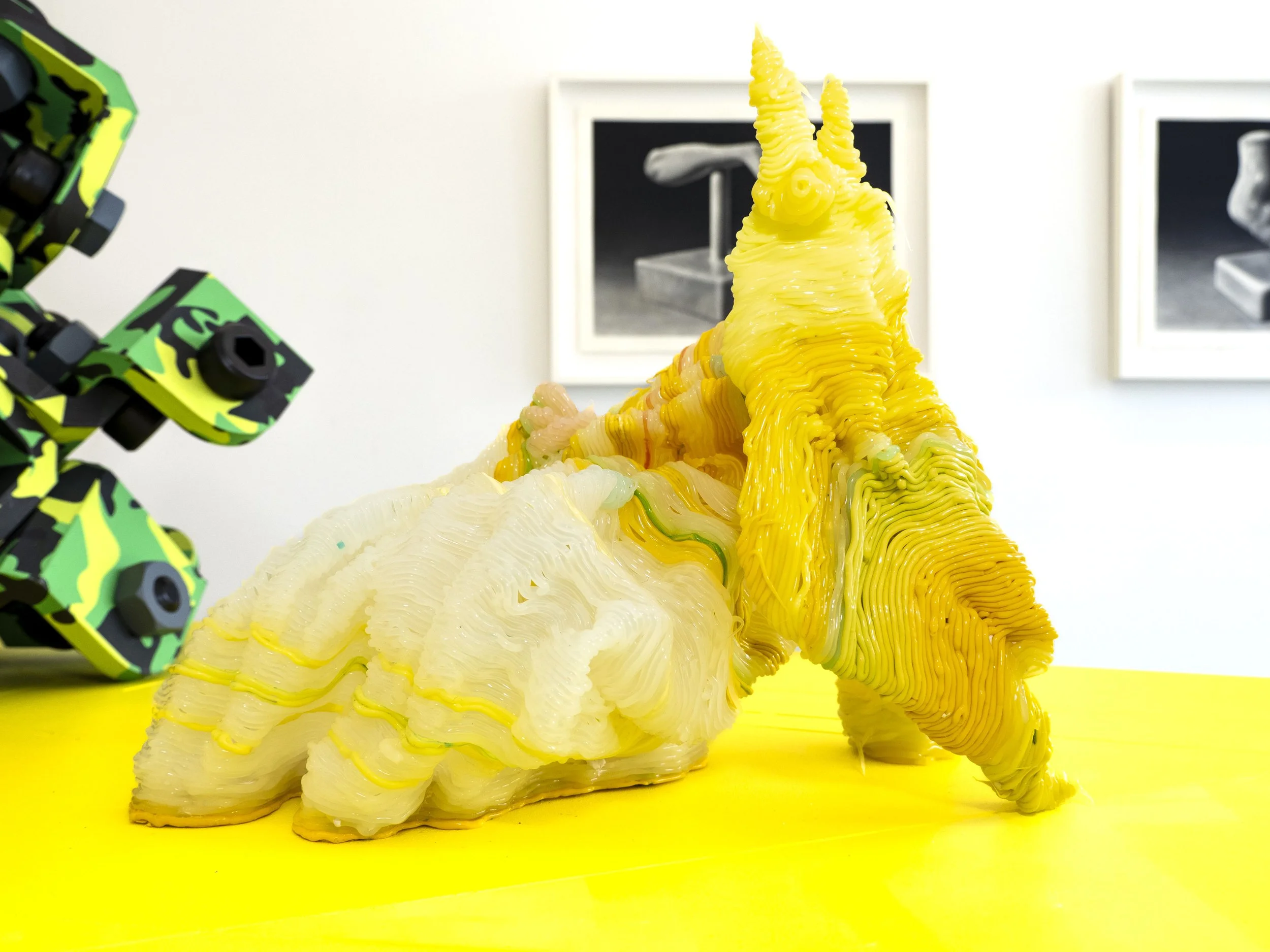Daniel Press chats with co-curator Sarah Eddowes. Sarah discusses the subtle interplays between materiality in digital and physical space. Blobby ceramic, wobbly silicone and an assortment of unconventional fabrication materials punctuate her practice, which uses the drawn line as a form of noodley chaos.