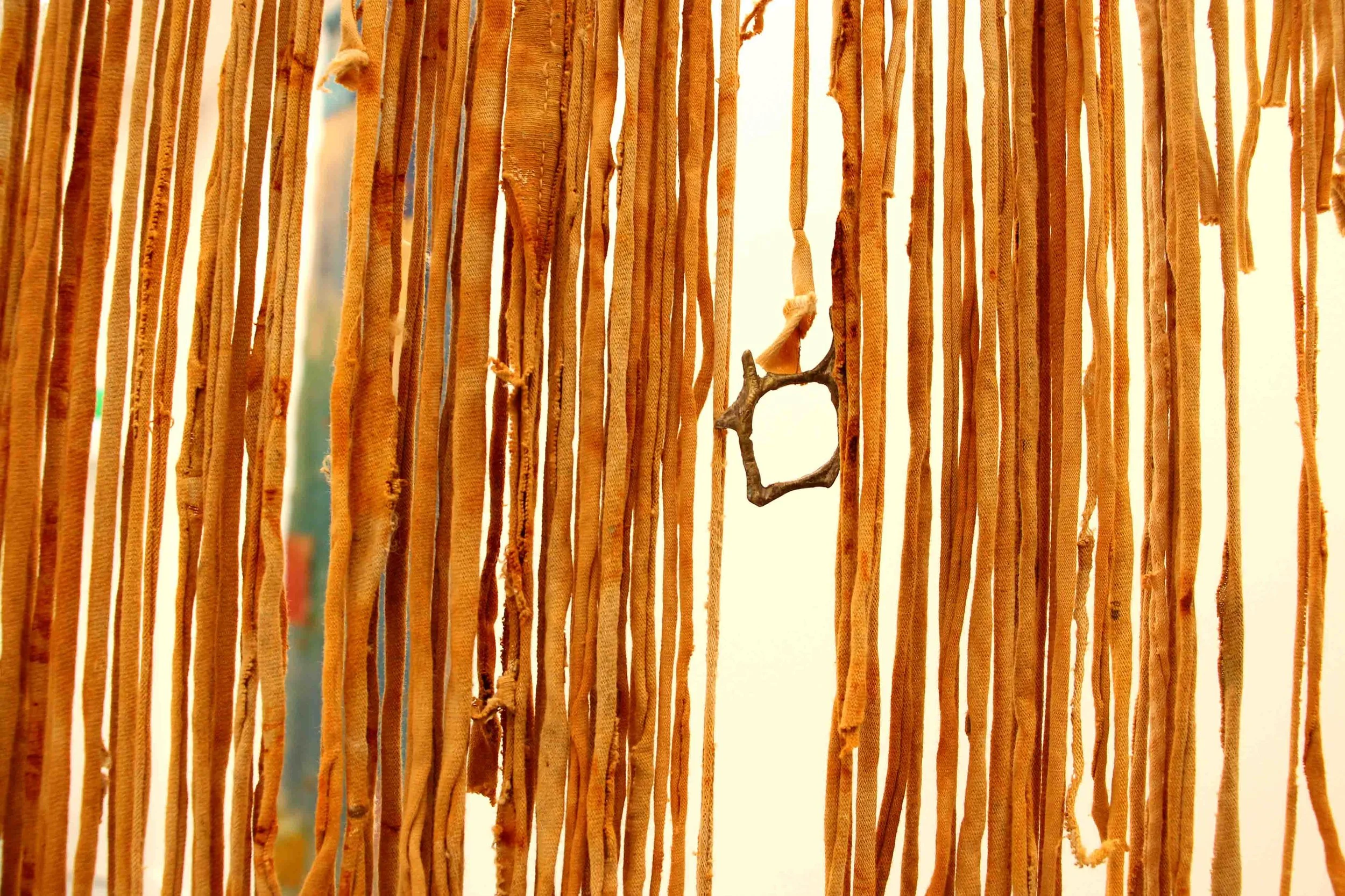 Joyce Lubotzky’s installation reimagines domestic fabric laundering using found objects from the coastal area. These discarded objects, entangled with seaweed become peculiar hybrids of the natural and humanmade. Handmade paper created from ocean materials like seaweed, microplastics, sand, and saltwater hangs alongside these objects to create a new ‘fabric’. Joyce says, “I think of the women throughout history who would take clothes to the water to wash them by hand. How they would take care of the clothes as a way of nurturing and protecting the body, the family, and the notion of civility. We have used ‘nature’ to clean ourselves. But now the ocean returns what we give it: not our care, but our waste.” The installation underscores the fraught relationship between humans and their environment by displaying the strange fruits of our consumerism combined with organic matter.